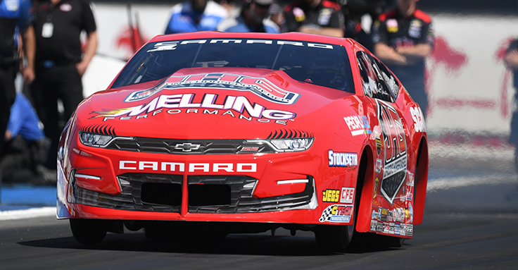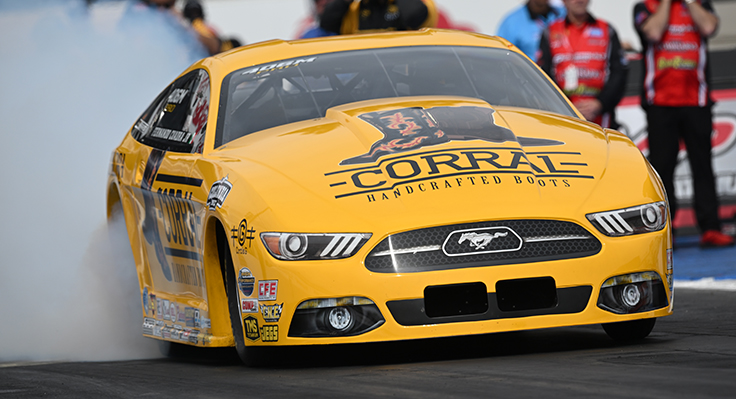 “Double-oh Dallas” Glenn lived up to his well-earned nickname with a .002 reaction time against low qualifier Camrie Caruso, then outran her, 6.573 to 6.574 to reach the final, the ninth of his career and his first of the season.
