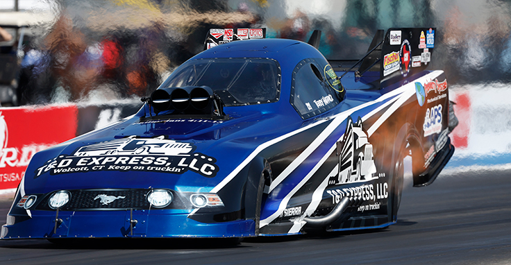 Bob Tasca III was vulnerable in his first-round race, the car losing traction downtrack, but he was able to pedal and ease to a 4.21 victory after local runner Jason Rupert smoked the tires at the green.