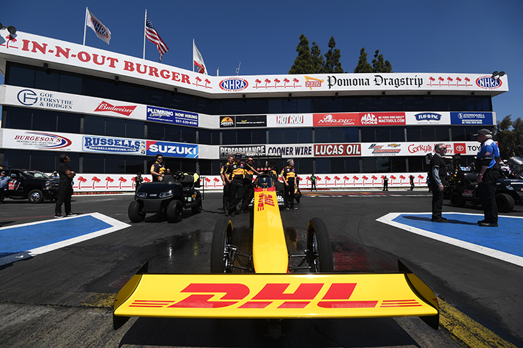 In Pomona, Langdon’s DHL machine got the drop on the class’ all-time winner, Tony Schumacher, and took the win light on a 3.740 to 3.738 holeshot.