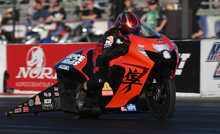 Eddie Krawiec is still in the running for his 50th career win following a win against Marc Ingwersen. Krawiec, who hasn't won since the 2021 U.S. Nationals, slowed to a 6.95 on his Vance & Hines/Mission Foods Suzuki, but needn’t have worried as Ingwersen left a red-light hanging on the starting line.