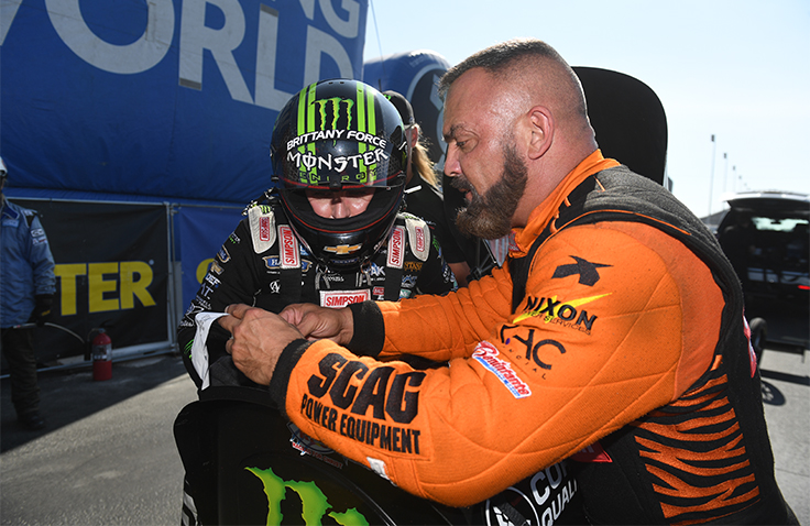 "You don't kid yourself and go up there and think it's going to be easy at all," said Schumacher. "Grubby is a real smart guy, and Brittany is a heck of a driver. I know it's going to end their championship or at least put them in a hurting, but my job is to win for SCAG Power Equipment and not worry about that stuff."