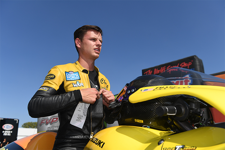 Pro Stock Motorcycle Pairings for the semifinals, lane choice first: Gaige Herrera vs. Chase Van Sant; Matt Smith vs. Eddie Krawiec
