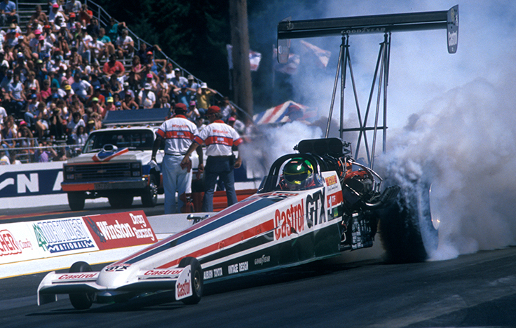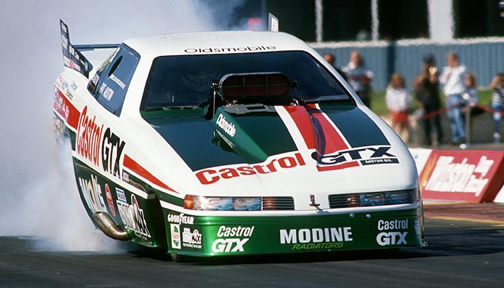 The Austin family’s Castrol GTX Olds Top Alcohol Funny Car won world championships again in 1988 and ’90 and had won 45 times between the 1986 Cajun Nationals and the 1991 Northwest Nationals in their Seattle backyard.