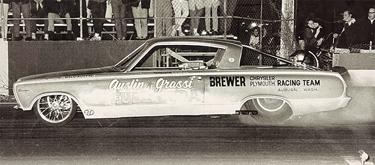 Before his Top Gas success, Walt also had the Northwest’s first blown Funny Car, the Austin & Grassi Nitro 'Cuda, which was undefeated in match race competition in 1967 and driven by both Grassi and Rogers.