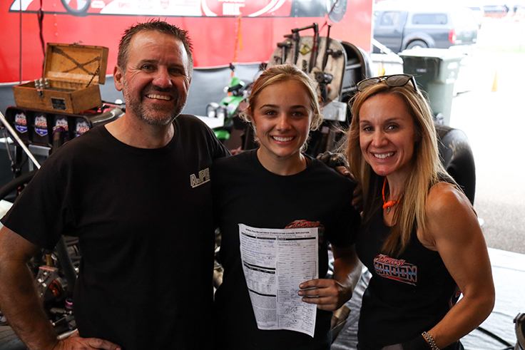 Kris Hool, a fellow Top Alcohol Funny Car driver with more than 30 years of experience and family friend, was working on Lance Van Hauen’s car at the Lucas Oil NHRA Nationals. Instead of traveling home Sunday night, he stayed to watch Maddi make her licensing runs and was thrilled to sign off as well.