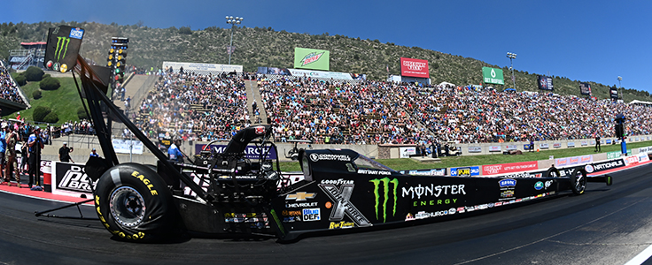 "That run might not have been any different at sea level," he posited, and I picture him twirling his trademark toothpick in mouth. "The air drag in Denver is so much less than it is at sea level that it's just about a wash for the horsepower. You don't really lose much horsepower in a fuel car up there because of the nitro and the blower. It does make a little less power, but there's just so much less air drag that it's just easier to go fast.