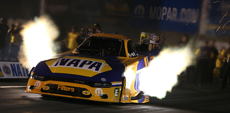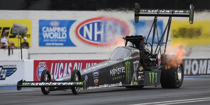 At last year’s Dodge Power Brokers NHRA U.S. Nationals, Brittany Force’s David Grubnic-tuned Monster Energy Top Fueler reached a speed of 299.73 after covering just 660 feet of racetrack, falling just shy of the magic and lucrative 300-mph speed. The first driver to reach the triple-century mark at 660 feet will collect a $30,000 payout from the Phillips Connect 300 at the 1/8 program.