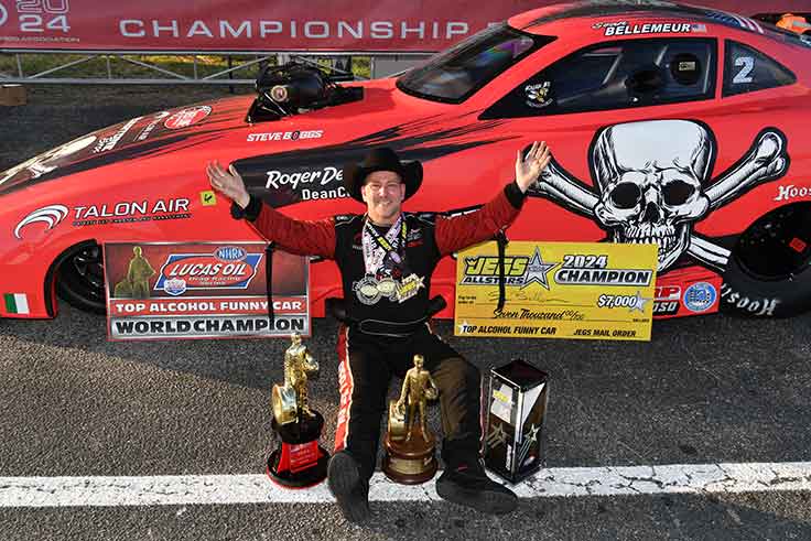 Bellemeur compiled a perfect score in 2018, and he did it again this season with 10 wins, including seven national events. Bellemeur, who now has four titles as a member of the Killer Bs team, along with owner Tony Bartone and crew chief Steve Boggs, locked up the title in Dallas and finished more than 200 points ahead of championship runner-up Maddi Gordon.