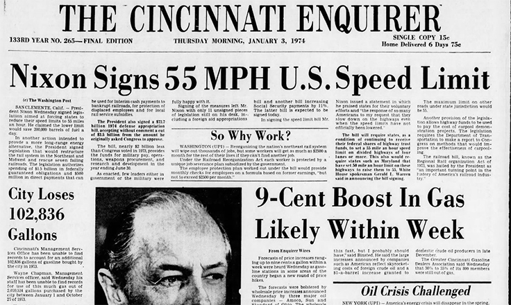 Much of the world, including the United States, was still reeling from 1973’s OPEC oil embargo, which caused gasoline shortages and long lines and skyrocketing costs at the pumps for consumers. President Richard Nixon level lowered the national speed limit to 55 mph to help conserve fuel.