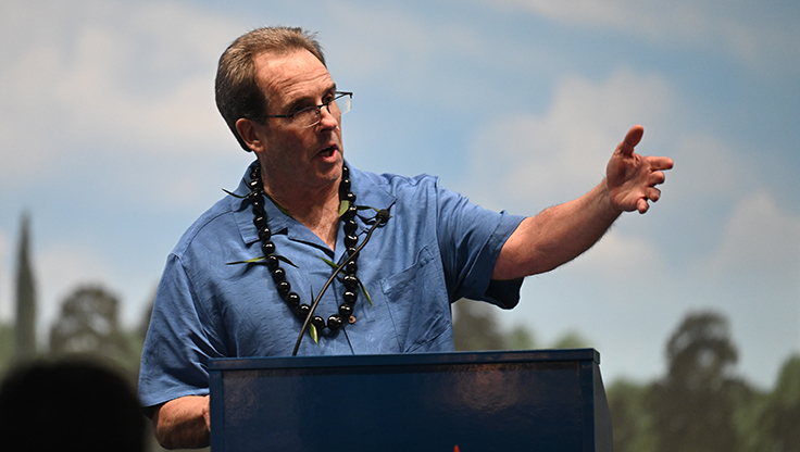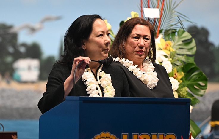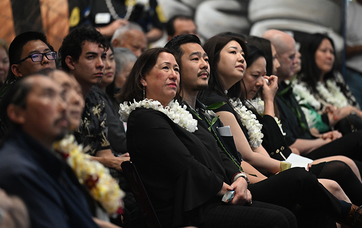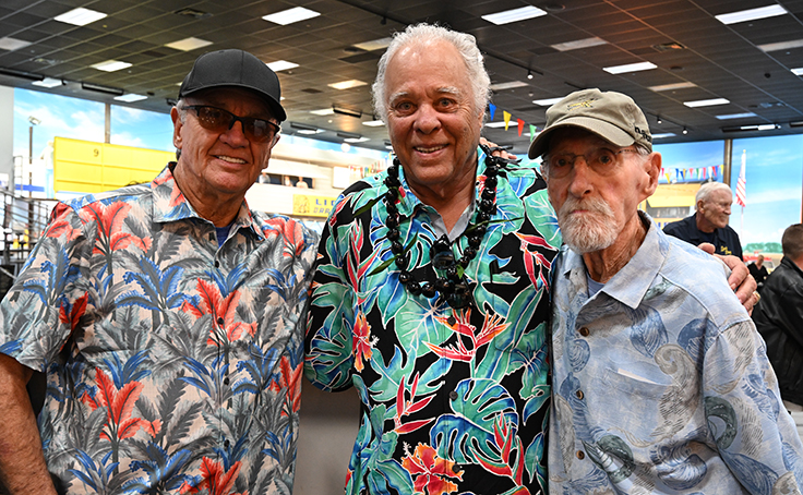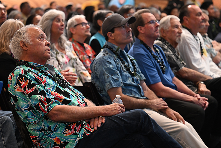 Hawaiian-print shirts, old Hawaiian race-car T-shirts and crew uniforms, and leis were part of the attire for many in attendance.