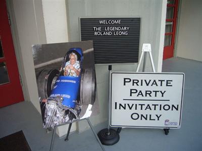 As I filed into the venue with my car-pool buddies — NHRA President Glen Cromwell and fellow high-ranking NHRA execs Ned Walliser and John Siragusa — there was, of course, a sign staked out front with Roland’s photo on it, and I couldn’t help but chuckle, remembering a day in April, 13 years ago, when it was Prudhomme who was being honored with a surprise 70th birthday party at the NHRA Motorsports Museum. Incredibly, through the planning and invitation phase, “Snake’s” family and everyone on the invite list somehow kept it a secret from him.