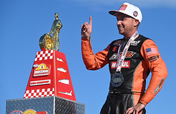 “I never thought I would win a championship or even a race in Pro Stock Motorcycle, so it means a lot to win two in a row. But I think it means even more for this team. Andrew and everyone at the shop deserve this, and I’m lucky to be able to showcase how much work they put into it. Next year is going to even more challenging, but I’m looking forward to it.”
