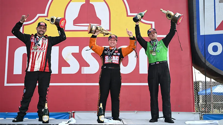 After struggling in qualifying, Hagan reached the finals for the fourth time this year and 91st time in his career, getting past Ron Capps, Daniel Wilkerson and J.R. Todd. Austin Prock remains in the points lead, holding a 218-point advantage over Bob Tasca III heading to Indy.