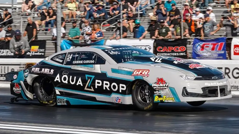 Pro Stock racer Camrie Caruso has partnered with Aqua Prop for the 2024 NHRA Mission Foods Drag Racing Series season. Caruso plans to drive her powerful Pro Stock machine alongside Aqua Prop’s CEO, Brandon Foster, who is committed to competing in at least 15 national events this season. Both Caruso and Foster will banner the Aqua Prop logo as their primary partner in 2024.