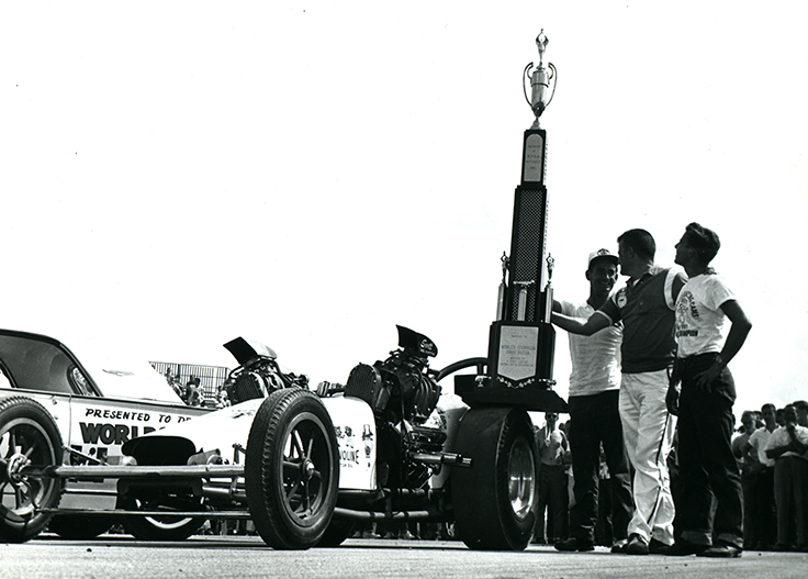 “They ended up winning the NHRA championship that year, which ended at Indy. They got this huge trophy from NHRA and a new Thunderbird from Hurst. Jerry took the trophy and he gave the car to our parents."