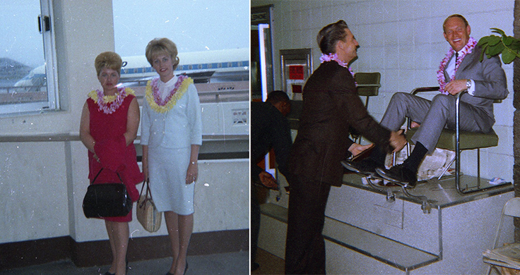 “That’s our mom and Shrewsberry's wife, Charlotte, at the airport and Dad acting like he was shining Shrewsberry’s shoes. They were real good friends.”