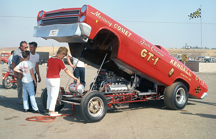 “We had two Sachs and Sons Comets. This is the first one that Fran Hernandez gave them. Dad quit driving dragsters when he got hurt in 1963, and then the factory gave him this A/FX car, but he didn’t like it because it was a stock car, so he hired Bill Shrewsberry to drive it. Ford asked what it would take for him to drive it, and he said, 'Put a blower and nitro on it,’ so a month or so later, they call him up and said, ‘Come and get your new car,’ which of course is the car that was the template for the nitro Funny Car. It wasn’t the first, but it was the most famous.”