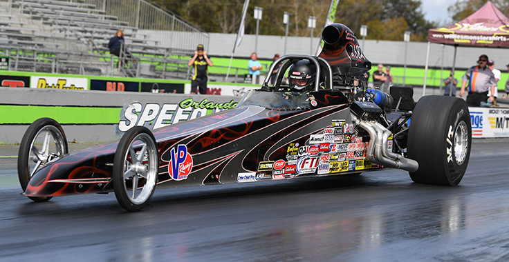 Joseph Fuller, Savannah, Ga., '23 Dragster, 8.910, 182.40 def. Frank Altilio, Orange City, Fla., dragster, 8.944, 156.86.