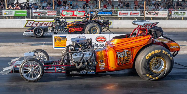 The Wally Parks NHRA Nostalgia Nationals, a long-running event as part of the NHRA Hot Rod Heritage Racing Series, packed hundreds of racers from around the nation as well as some of the coolest hot rods, customs, and classics that you will ever see into the historic and wholly fantastic confines of Beech Bend Raceway Park. The track, with its covered grandstands and seats that date back to a baseball stadium built in 1920s, is a venue without compare for this style of competition. Along with a slate of Sportsman categories, nitro burning front-engine Top Fuel Dragsters, AA/Fuel Altereds, and Nostalgia Funny Cars wowed the crowd, and the Saturday evening Cacklefest once again became a moment of time travel where some of the sport’s most notable and historic iron fired up in unison to throw header flames and nitro plumes into the gloaming.