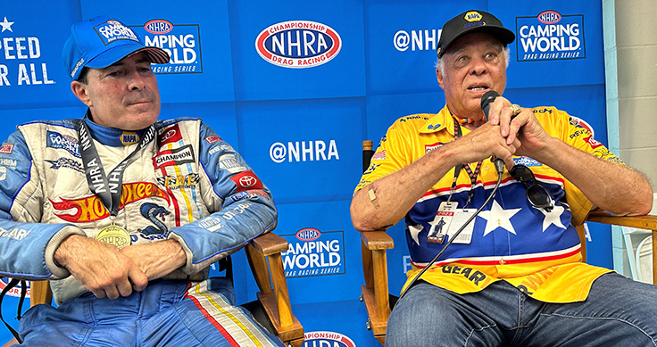 It was also in that area that we could engage with drivers who had just won the biggest events of their lives in a formal setting. Prior to that, many of our interviews took place during or immediately after the winner’s circle photo sessions, which were not exactly conducive to the process. We saw a lot of Tony Schumacher (10 wins!) and John Force (five wins) and listened to their recounts and grooved on the emotions of their victories all the way up through the amazing Ron Capps/Don Prudhomme victory last year.