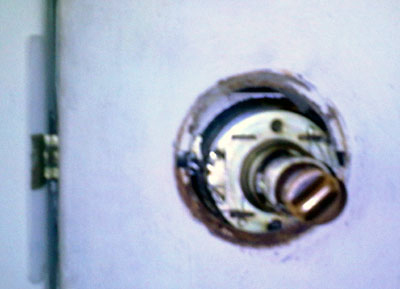 The good news was that the lock was one of those KwikSet jobs; relatively simple if you can get into them. . and this would have been a snap if I had a screwdriver in my pocket but – and here comes the bad news – I had neglected to pack one for my trip.