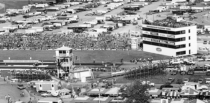 It’s been there for as long as I’ve been coming to Indy, and unless you’re an OG fan, it’s probably the same for you. Even though I was hired at NHRA National Dragster in May 1982, I didn’t get to go to the ’82 U.S. Nats and missed seeing stunning runs like Gary Beck’s 5.48 (the first sub-5.5-second Top Fuel run) or Don Prudhomme’s jaw-dropping 5.63 in Funny Car (a run that wasn’t bettered for almost three years).