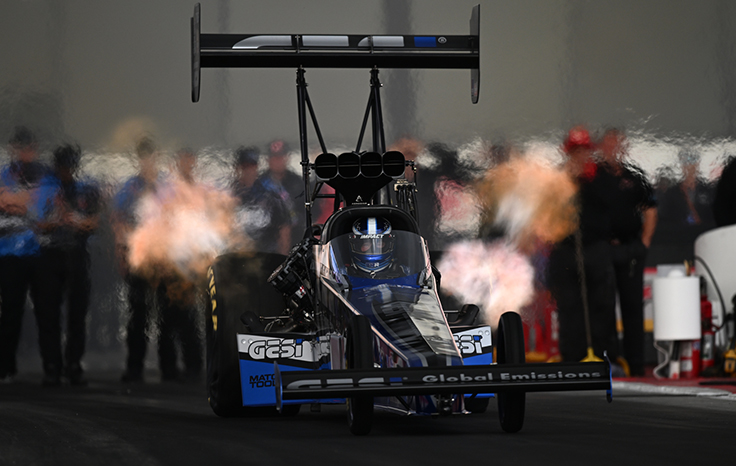Gary Pritchett, who’s driven everything from Nostalgia Funny Car to Super Street to event winner in Top Alcohol Dragster this year, made his first Top Fuel pass -– a “lifelong dream” -- in Travis Shumake’s dragster which ran a strong 3.72 pass in Las Vegas and blasted to a 3.75 here. At 6-foot-4, Pritchett can’t slide into just anyone’s Top Fuel ride, but luckily, he’s the same size as Shumake. Pritchett who previously worked on the multi-time championship team of Steve Torrence, will be pulling double duty this weekend as he also will do the clutch on his own car.