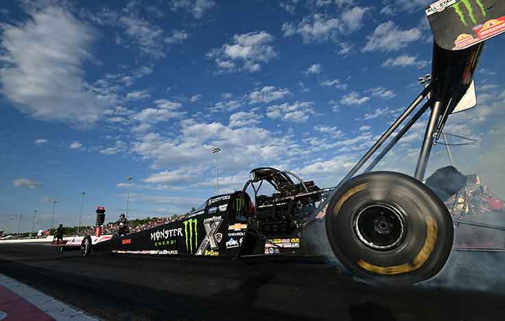 There are few things more exciting that Top Fuel dragsters under the lights and Epping fans got their fill on Friday as NHRA’s biggest stars lit up the scoreboards. No one was quicker than reigning world champ Doug Kalitta who wheeled his Mac Tools dragster to a 3.700 to lead the way. Kalitta barely held off Steve Torrence, who was just two thousandths behind with a 3.702.