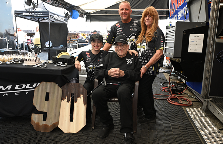 A very special celebration took place in the pits before Q1 as the drag racing community got together to honor legendary tuner "Big Jim" Dunn in advance of his 90th birthday next week, 75 of those years have been spent in drag racing. Dunn still tunes the team's Funny Car, driven this year by former Top Fuel racer Buddy Hull.