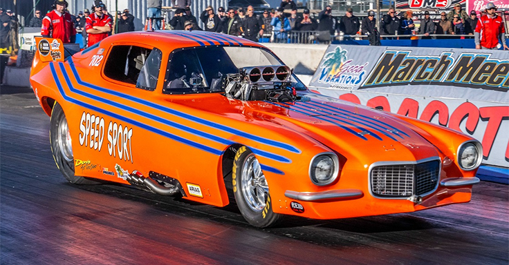 Vying for claim to each of the three bonus programs at In-N-Out Burger Pomona Dragstrip will be returning Legends Nitro Series champion Cottrell in Bucky Austin’s ’69 Camaro, Monise in “Quarter Pounder,” Jeff Arend in “Problem Child,” Tim Boychuk in “Happy Hour,” Kamaka Pocock in “California Hustler,” Nathan Sitko in “Bubble Up,” Derrick Moreira in “Nitro Junkies,” Ryan Horan in “Infinity Plumbing Designs,” Jon Capps in “Speed Sport,” Mike Peck in “Instigator,” and Don Knoblauch in “Atomic Punk.”