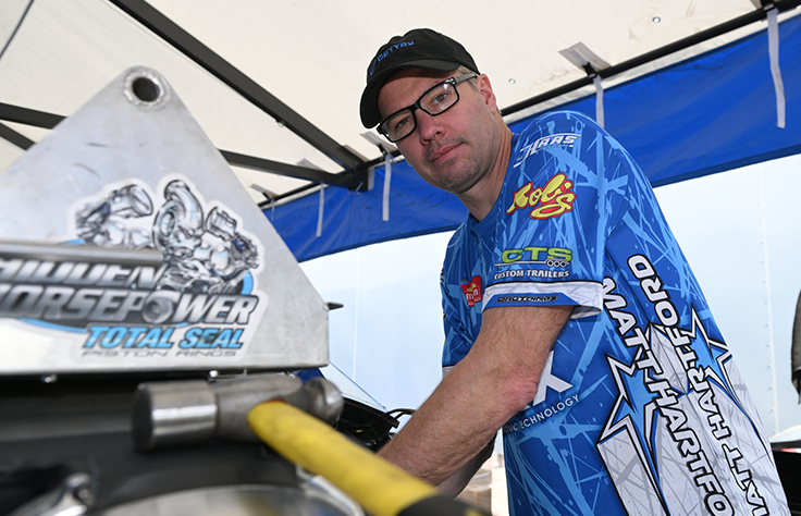“We definitely had to back it down to make sure we got down the track,” said Matt Hartford, who had the early qualifying lead in Pro Stock at 6.568 until the final run of the session. “We had to chip it down [rpm limiter], take some transmission out of it, and play with the tires just to make sure.”