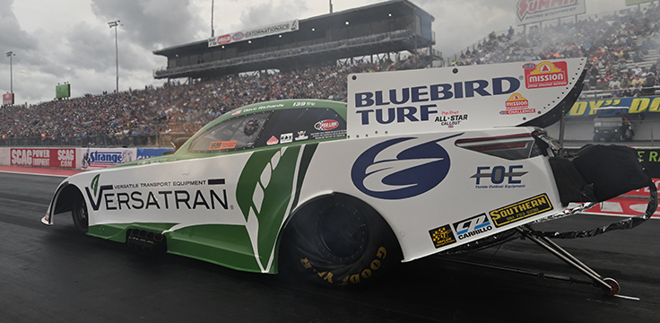 Dave Richards and the Versatran/BlueBird Funny Car team, making the first start of what will be their first full season on the tour, didn’t make the show in Gainesville after mechanical gremlins — including a stuck throttle stop — on the first three qualifying runs and then losing their last shot due to rain.