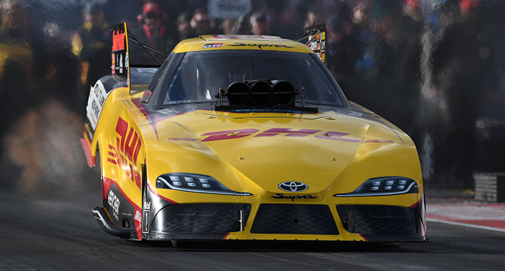 J.R. Todd avenged his Winternationals loss to Matt Hagan, beating the world champ, 3.923 to 3.996. and ending Hagan’s bid for a three-win weekend while John Force, who will take on Hagan in tomorrow afternoon’s rain-delayed Winternationals final, kept his triple-play hopes alive with a 3.901 to beat tire-smoking Ron Capps.