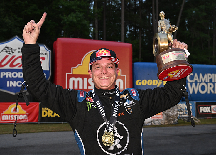 Back-to-back wins in Bristol and Richmond and a runner-up in Epping have boosted his lead to a nearly insurmountable gap. Prock also has won the Mission #2Fast2Tasty NHRA Challenge four times (Las Vegas, Bristol, Richmond, and Norwalk), which he’ll add to his points total at the reset after Indy.
