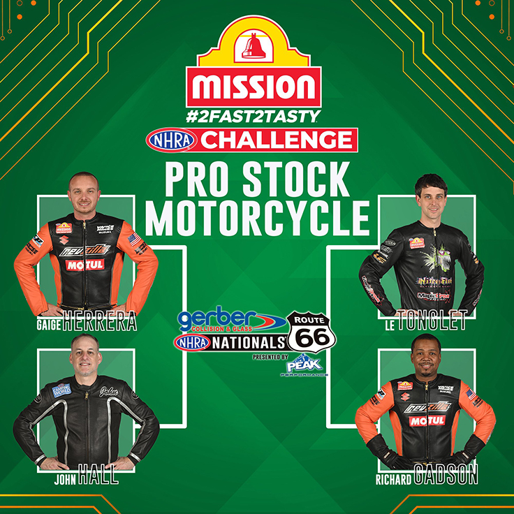 Herrera and his RevZilla Vance & Hines teammate Richard Gadson are both in Saturday’s Mission Foods #2Fast2Tasty Challenge along with Charlotte runner-up John Hall and Tonglet.