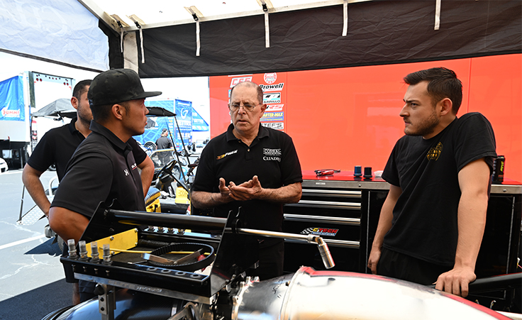 Primarily, Iaconio can be found next to the bold yellow Corral Boots entry driven by Cuadra – a second-generation Pro Stock competitor whose father, Fernando Cuadra Sr., finally qualified for a Pro Stock race a decade ago after switching to Iaconio power.