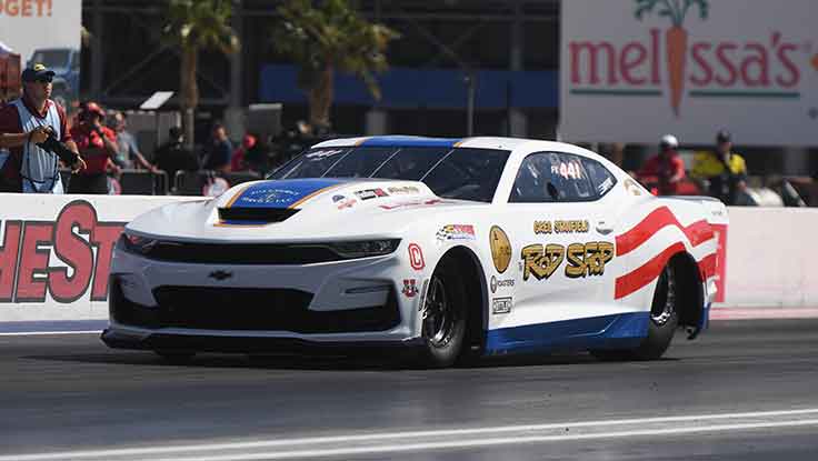 Five-time Super Stock world champ Greg Stanfield won three of the exhibition races last year in his Chevy Camaro, which pays homage to the legendary Rod Shop team. Stanfield won in Indy, Charlotte and Las Vegas while the win in St. Louis went to former Pro Stock world champ Allen Johnson, who drove Geoff Turk’s Blackbird X Dodge to victory against Chris Holbrook’s Ford.