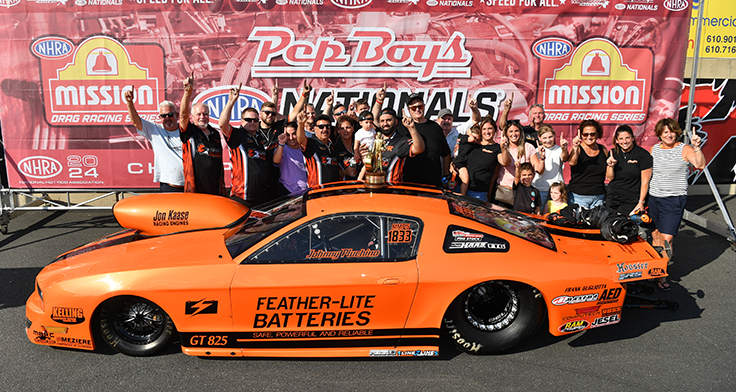 By the time the Pep Boys NHRA Nationals in Reading came around, Pluchino was all but healed, and feeling back in the game, he was primed for success. There at Maple Grove Raceway, Pluchino saw Butner removed in the first round by Tony Gillig while he disposed of John DeFlorian – No. 3 in the points at that time – to advance. Round two was a tough one as he and Gillig both fell into tire shake and pedaled, but Pluchino made it through unscathed to reach his fourth final of the season. Defeating veteran racer John Montecalvo with a .005 reaction time and a 6.325 to a 6.326 made the victory that much sweeter.