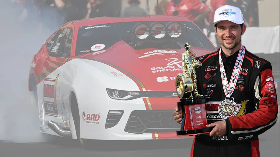 Lazic did not attend the Gainesville opener for the Congruity NHRA Pro Mod Drag Racing Series presented by LearnEV+ or the second event in Phoenix, but he managed to quickly gain ground on the field, and that helped him qualify for the Road to the Championship playoffs. Beginning the postseason in 10th place, Lazic quickly climbed into contention before ultimately winning the title with a memorable performance at the Ford Performance NHRA Nationals at The Strip at Las Vegas Motor Speedway.