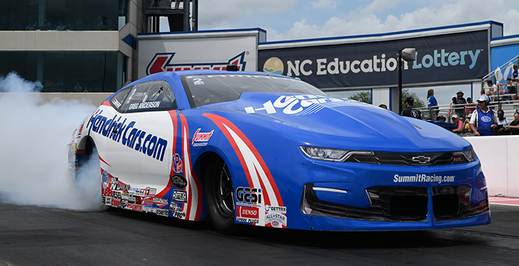 Pro Stock’s Greg Anderson finished as the No. 1 qualifier on the strength of Friday’s run of 6.500 at 210.90 in his HendrickCars.com Chevrolet Camaro, but Saturday certainly featured plenty of other headlines. His qualifying run in the third session – as part of the Mission #2Fast2Tasty NHRA Challenge – was disqualified due to a technical violation after bypassing a safety device. It eliminated that pass and took Anderson out of the specialty event, as his replacement, Erica Enders, went on to win the Challenge.