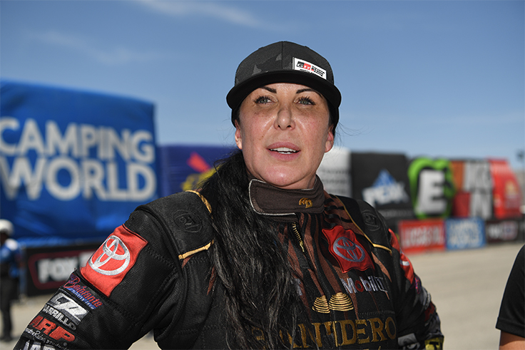 A batch of what DeJoria called "not-so-great" clutch discs began to dissipate the steam that had been building, however, and as the team filtered them into circulation, a series of other mishaps began to occur as well – many of which, DeJoria went on to say, were out of their hands. The ups and the downs showed in the results. After Charlotte, DeJoria was No. 2 in the Funny Car standings, but back-to-back first-round losses sent her down to sixth. A final round in Bristol elevated her to fifth in the points, and another final in Denver brought her all the way back up to No. 3.