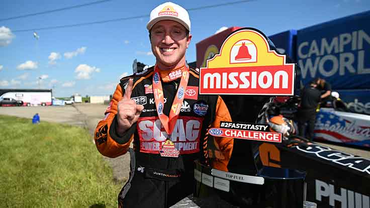 Justin Ashley (Top Fuel) and Gaige Herrera (Pro Stock Motorcycle) also won the Mission #2Fast2Tasty NHRA Challenge at the sixth of 20 races during the 2024 NHRA Mission Foods Drag Racing Series season.