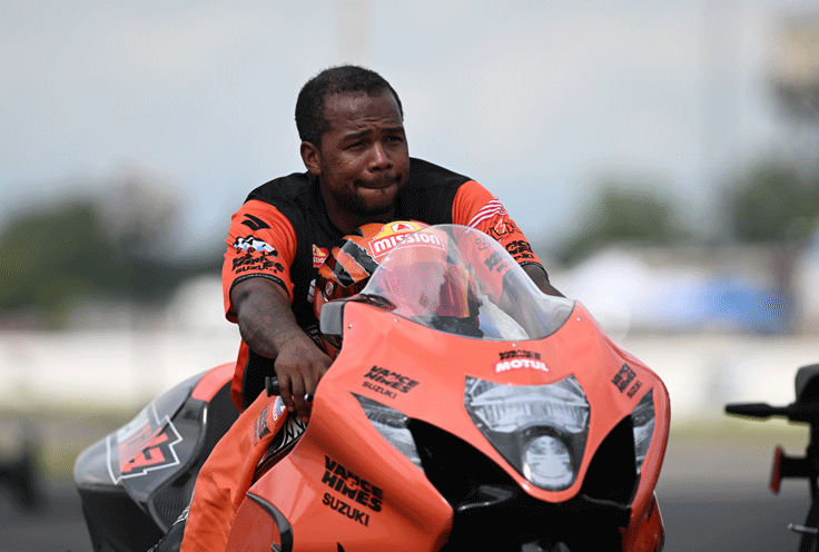 Vance & Hines rider Gaige Herrera will take on MSR’s Angie Smith in a pairing that guarantees a first-time Indy winner. Herrera has lane choice after a 6.804 in his win against teammate Richard Gadson. Herrera will be racing in his 20th career final.