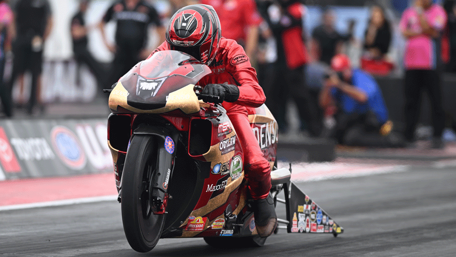 The Smith’s will renew their husband-wife rivalry in the semifinals when Matt and Angie race for a shot at the Toyota U.S. Nationals final. Matt rode to a 6.827 to earn lane choice. “This Denso bike is running good. We’re not up to the potential we need to be,” said Smith. “We’ll see what happens next round. We know there will be a Denso bike in the final and we know there will be a RevZilla bike in the final.”