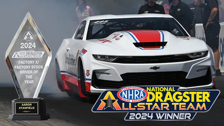 Aaron Stanfield didn’t win the 2024 Holley EFI NHRA Factory X championship, finishing second behind his father, Greg, but the three-time Factory Stock Showdown champ still earned a lot of respect from voters in the dual-category balloting between Factory X and Factory Stock Showdown drivers.