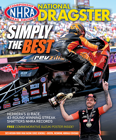 The July issue of NHRA National Dragster, saluting Gaige Herrera’s incredible Pro Stock Motorcycle winning streak and packed with race coverage and feature stories, is now online in digital format and in the mail in its traditional print format to NHRA Members around the world.