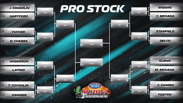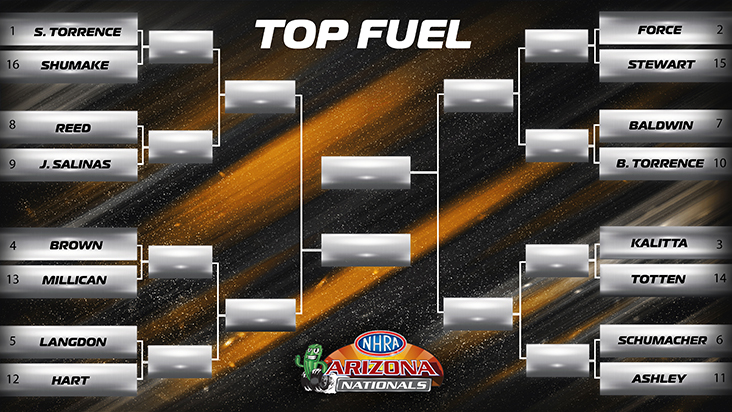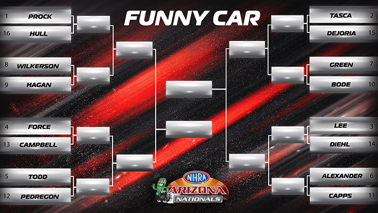 Winternationals champs Justin Ashley, John Force, and Dallas Glenn have the chance to follow their Saturday wins with victories today for a race-weekend double wins. Ashley is the defending event champ and Force has won this event eight times while Glenn is still looking for his first win in the Valley of the Sun.