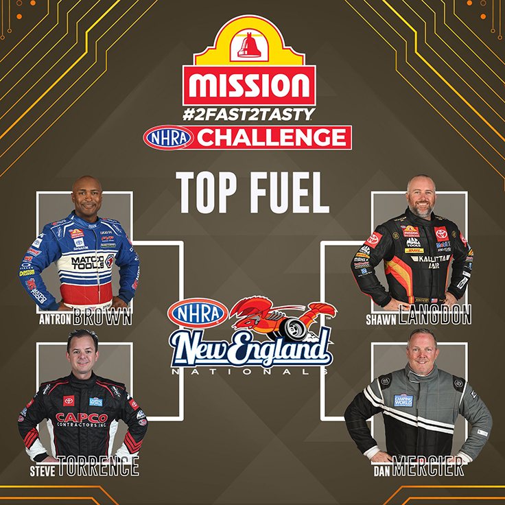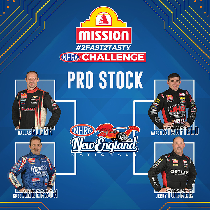 The 2Fast2Tasty Challenge in Funny Car features Route 66 winner Matt Hagan, who also happens to be the most successful racer in the history of New England Dragway with four wins here. Hagan will race Blake Alexander while John Force will be paired against Blake Alexander.
