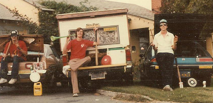 His parents owned a small commercial building that was unoccupied and became our clubhouse. We’d work on our cars in there, talk on the CB, or just hang out with a growing collection of pals and take stupid photos like this one. We tuned up our CBs like we did our cars, adding extra frequencies and “linear amplifiers” to boost the signal. When the atmospheric conditions were right, we’d drive to the local mountains (there was even a place dubbed “Linear Hill,” and “shoot skip” on our radios, literally bouncing the signals off of the heavens so that a radio that should only have a transmission range of 25 miles could actually reach another state or even another country. It sounds a little geeky now because your cellphone does the same thing under any conditions, but it was heavy stuff back then.)