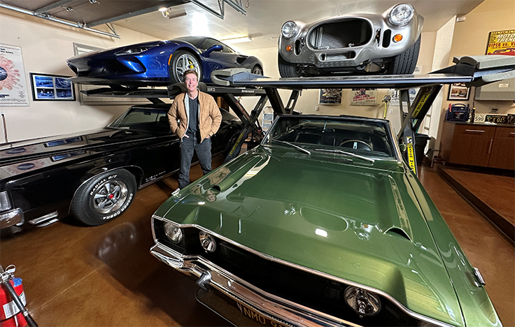 We got to visit a lot — not near enough — and took some final cruises together. He got himself a bad-ass Shelby Cobra replica, a Kirkham 427 considered by real Cobra owners to be the most accurate of all the replicas and a car that feels ready to rip your eyelids off. With no roof and only lap belts, I would have been half-scared to death with anyone else behind the wheel, but my buddy has had so much experience in fast cars and on racetracks that I trusted him implicitly. He also bought the '68 Dart GTS convertible used in the Mannix TV show, another of his longtime favorite television detective shows. He had so many cars that he installed lifts in his garage to accommodate more of them at home, where he could drive them.